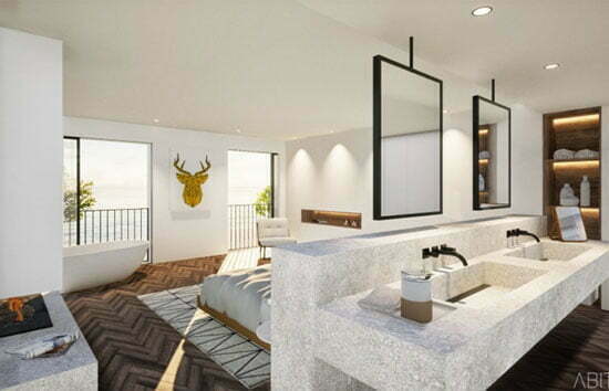 Ein besonderes Highlight des Hauses ist die 150 qm große Dachterrasse, die verschiedene Zonen und Bereiche bietet, in denen man sich in der Sonne entspannen oder im Schatten essen kann. Darüber hinaus wird eine High-End Außenküche integriert, die das Zubereiten von Mahlzeiten im Freien zu einem besonderen Erlebnis macht.