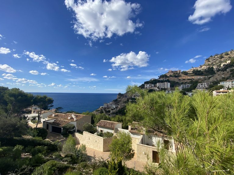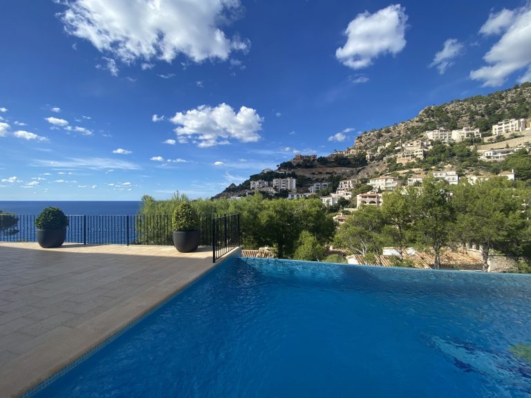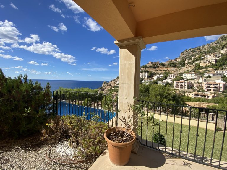 Vom Wohnzimmer aus gelangen Sie über eine Marmortreppe in die obere Etage mit dem großen Hauptschlafzimmer mit Bad en Suite und der eigenen Meerblick-Terrasse und zu einem weiteren Schlafzimmer mit separaten Bad.