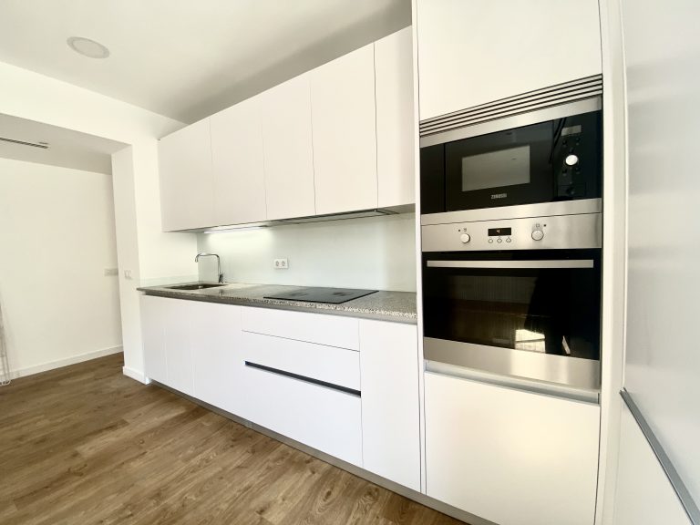 Diese helle und geräumige unmöblierte Wohnung erstreckt sich über den dritten Stock und ist bequem mit einem Aufzug zu erreichen. Sie zeichnet sich durch einen großzügigen Wohn- und Essbereich von 35 Quadratmetern aus, der nahtlos in eine moderne offene Küche mit hochwertigen Geräten übergeht.