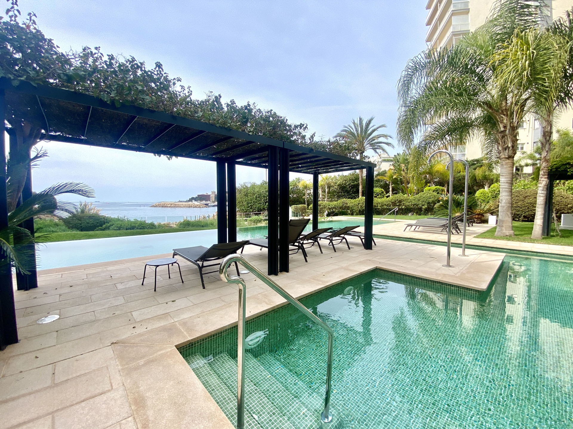 Die exklusive Wohnanlage erweitert das luxuriöse Wohngefühl um einen Concierge-Service, direkten Zugang zum Meer, einen großzügigen Gemeinschaftspool mit atemberaubendem Meerblick, ein beheiztes Hallenbad samt Sauna, Dampfbad und Fitnessstudio, Zugang zum Strand, einen 24-Stunden-Sicherheitsdienst sowie einen Tiefgaragenstellplatz.