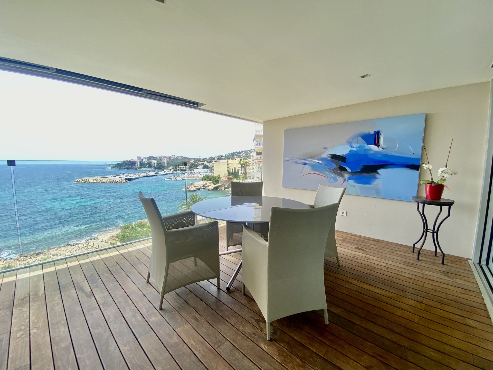 Die umfangreichen Fensterfronten sorgen für ein lichtdurchflutetes und transparentes Wohngefühl und eröffnen einen unvergleichlichen Blick auf das Meer.