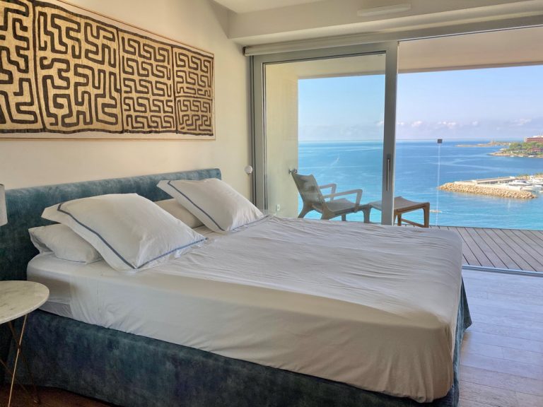 Zu dem Luxusapartment gehören zwei komfortable Schlafzimmer, sowie zwei Bäder (eines davon en Suite und direktem Zugang zur Meerblick-Terrasse).